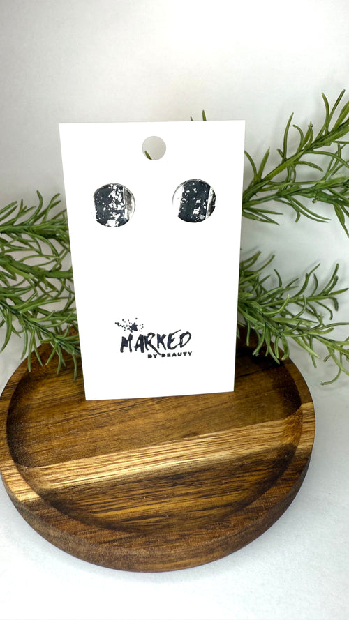 Circle ~ Black.White.Silver Galaxy Polymer Clay Stud Earrings